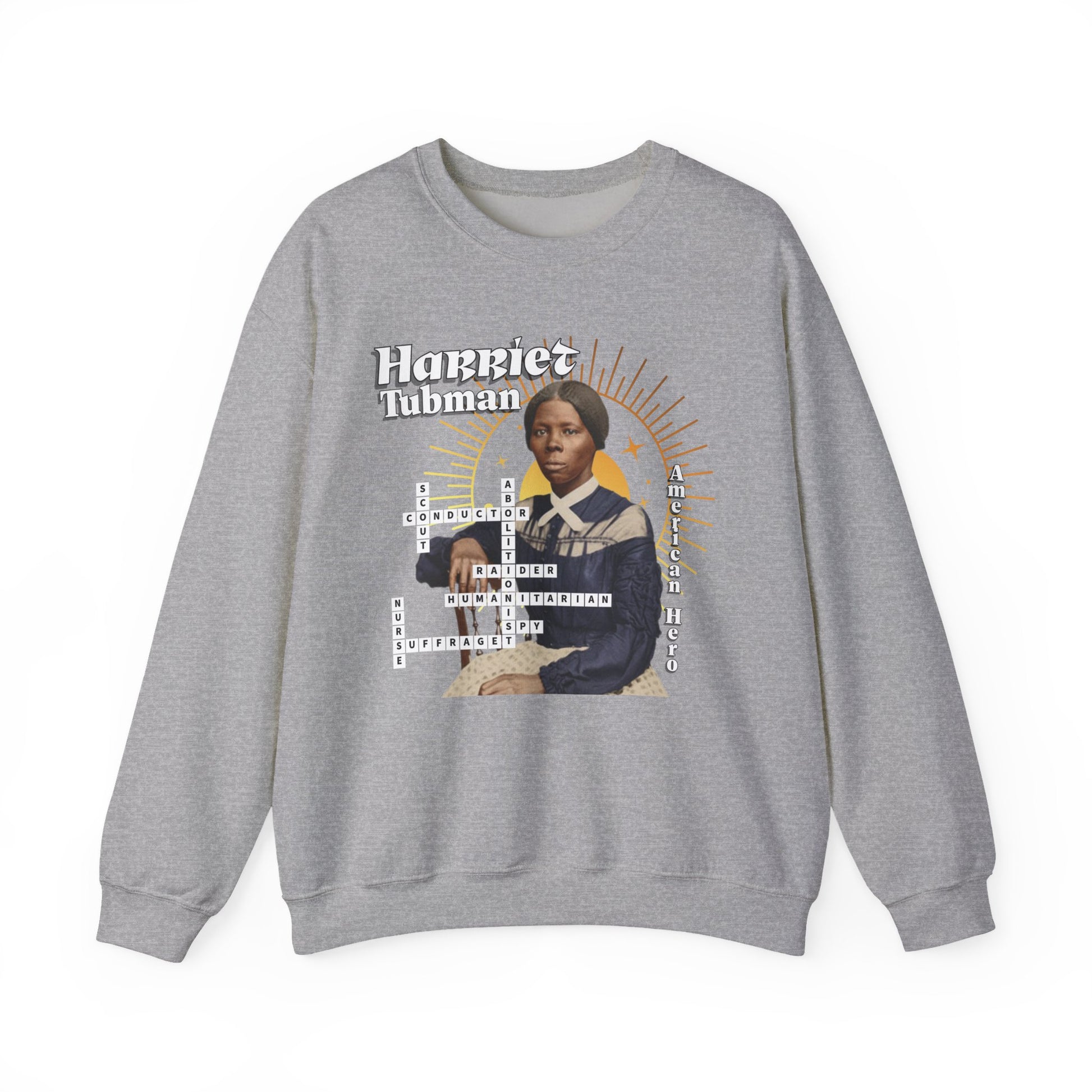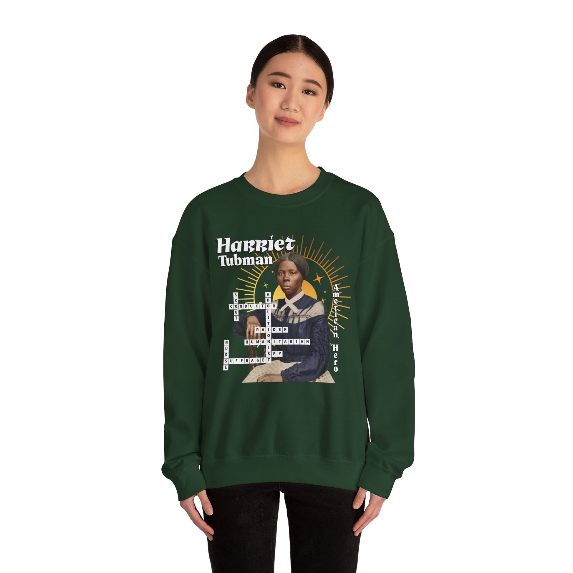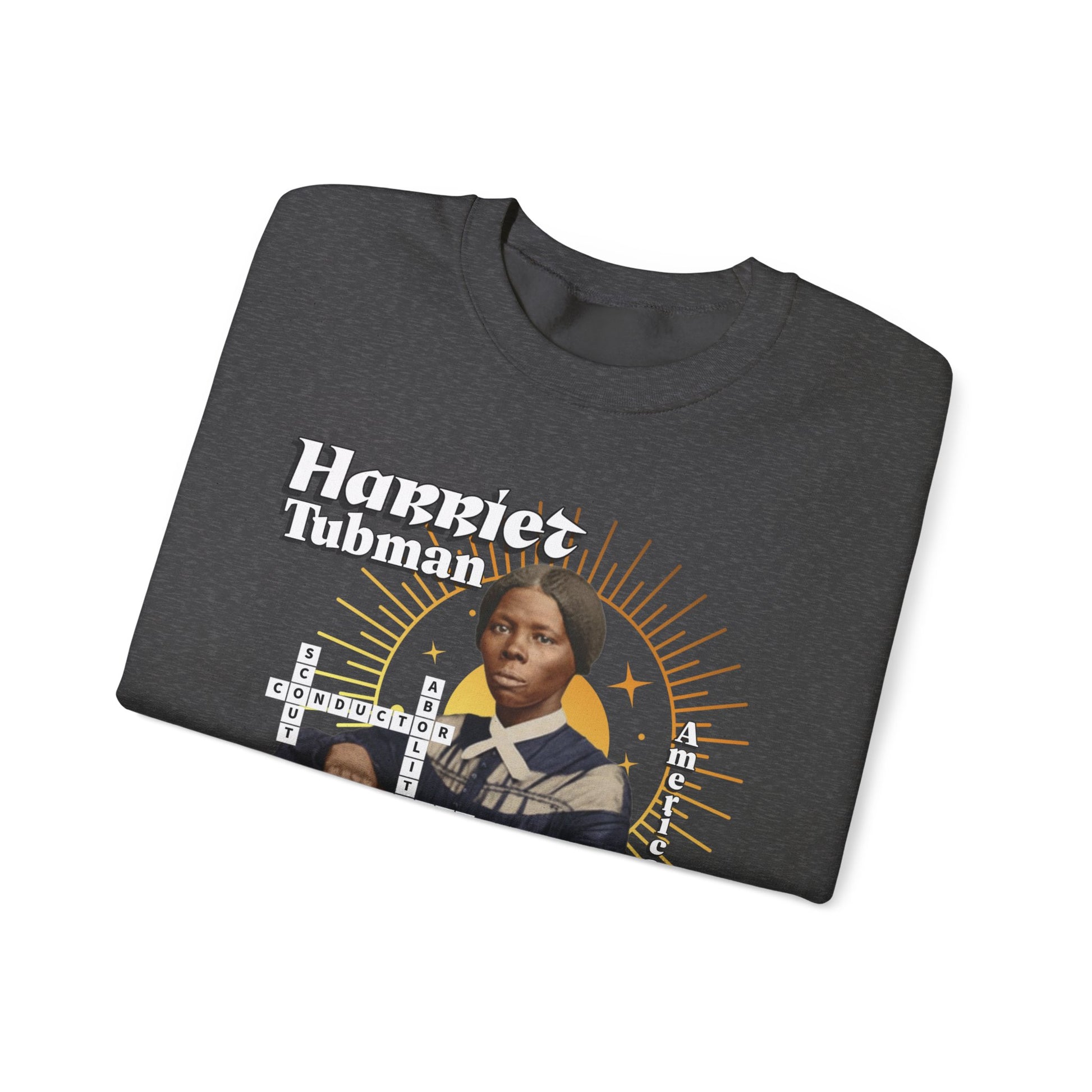 Harriet Tubman Crewneck Sweatshirt — Black History Tribute, muted colors, white & black text