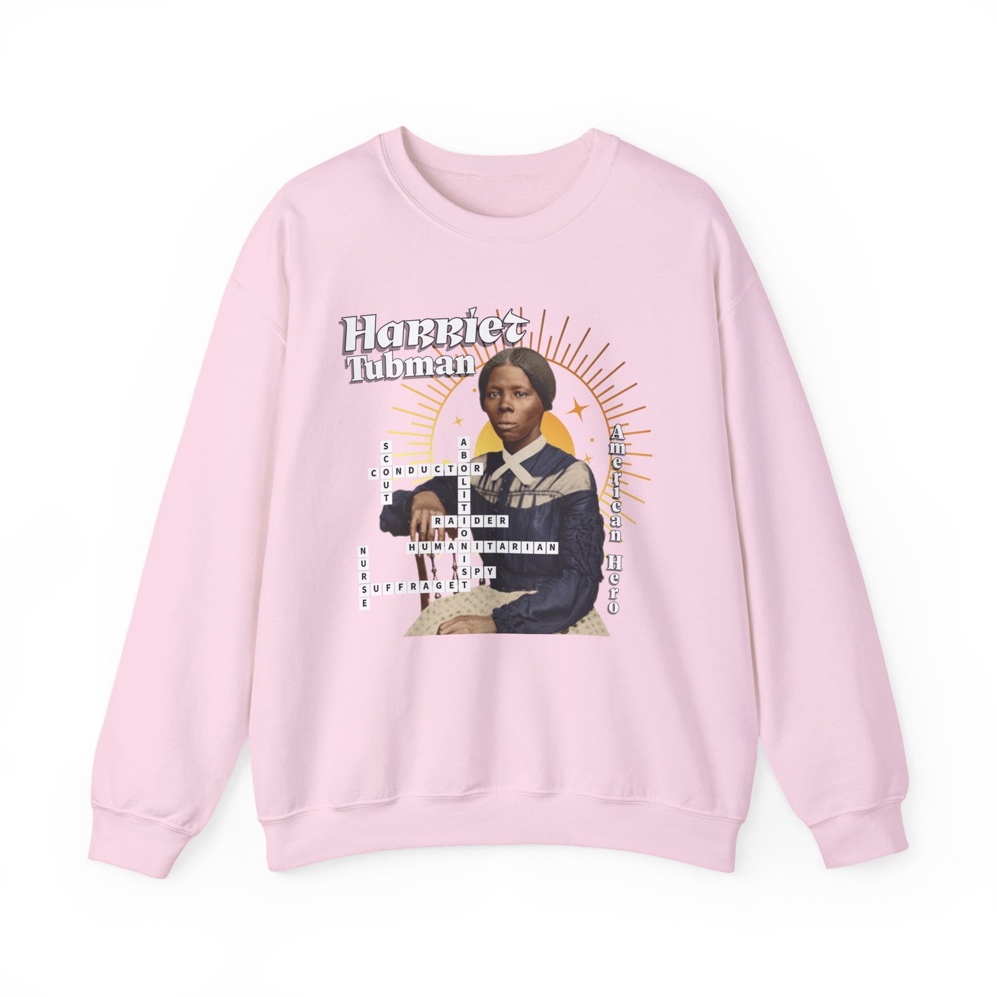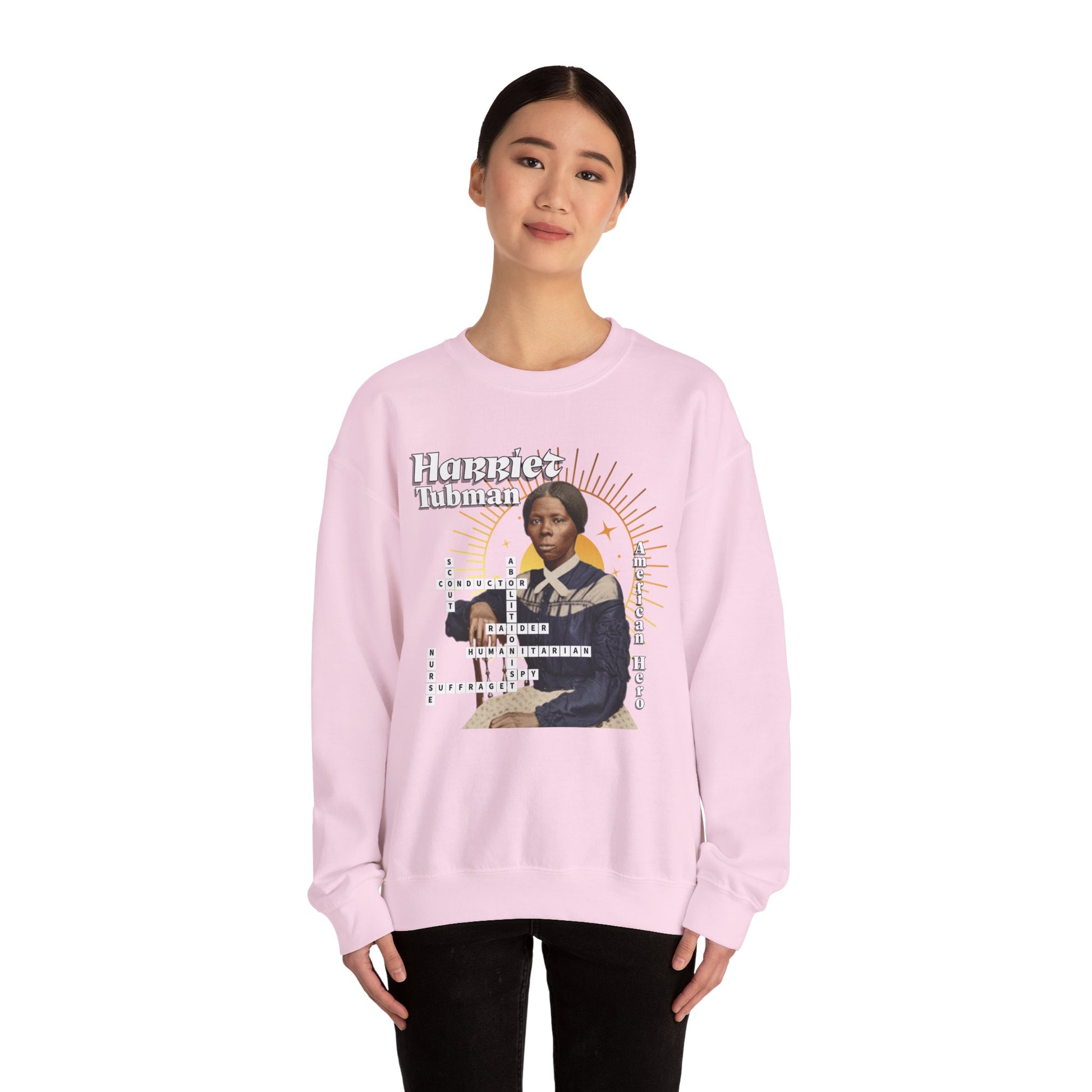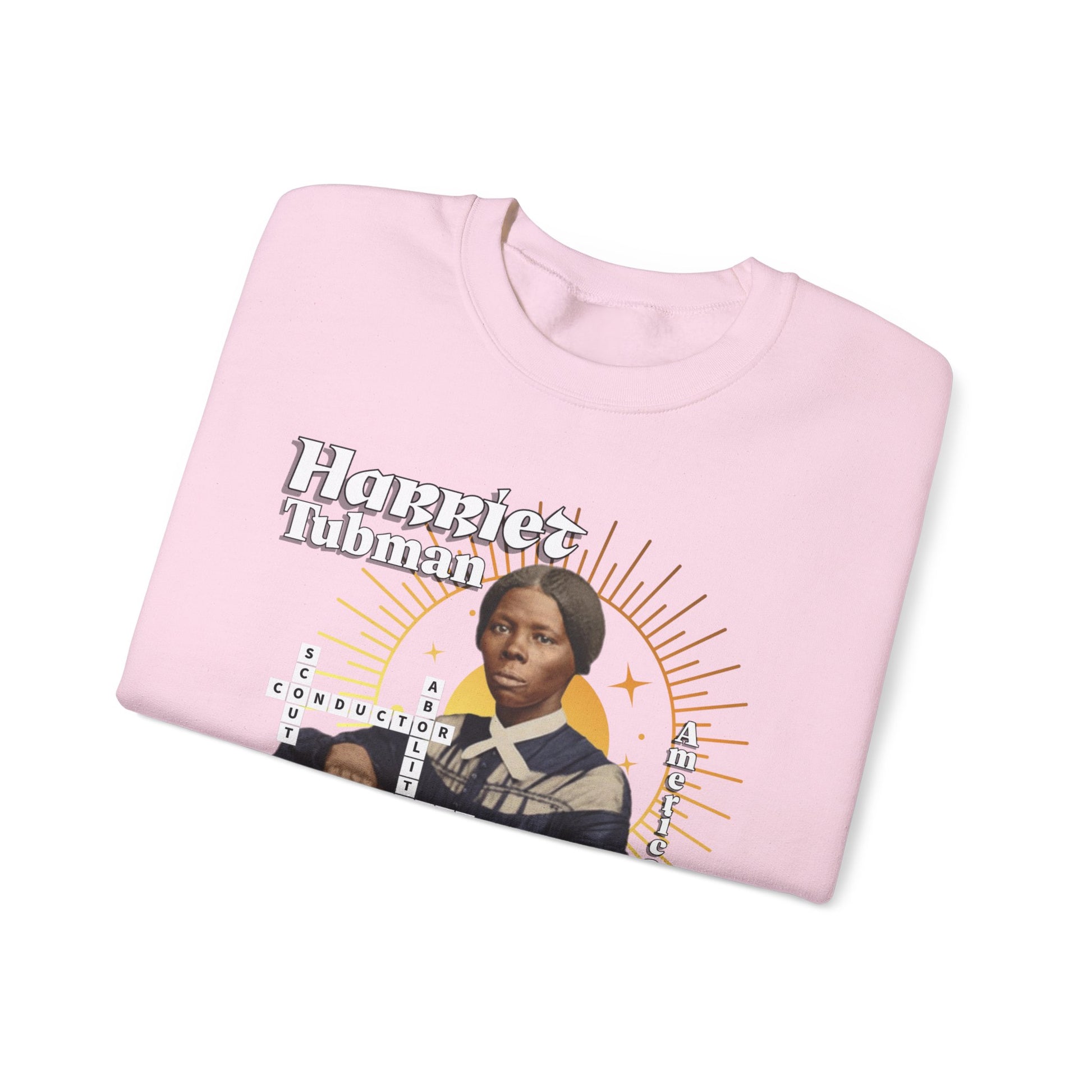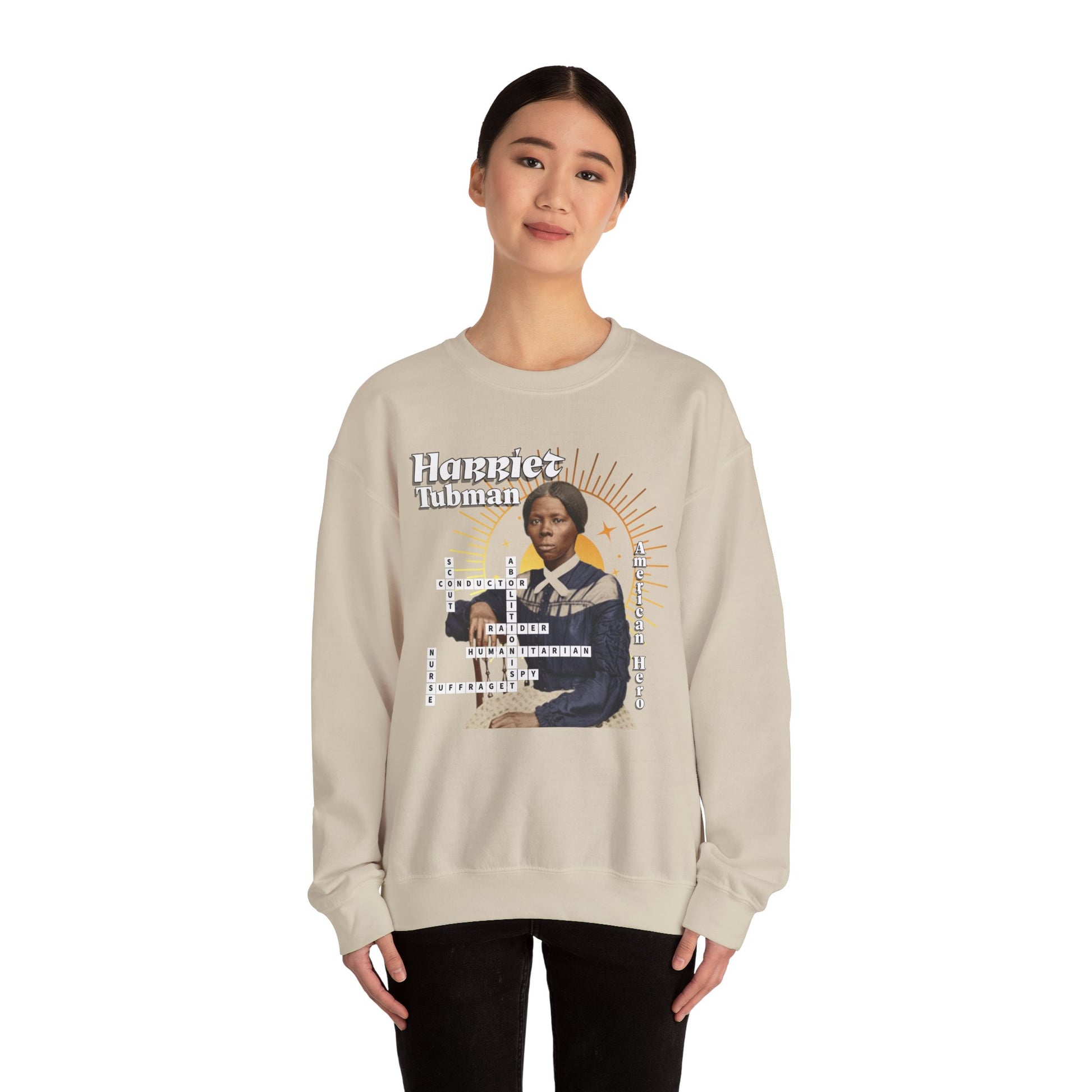 Harriet Tubman Crewneck Sweatshirt — Black History Tribute, muted colors, white & black text