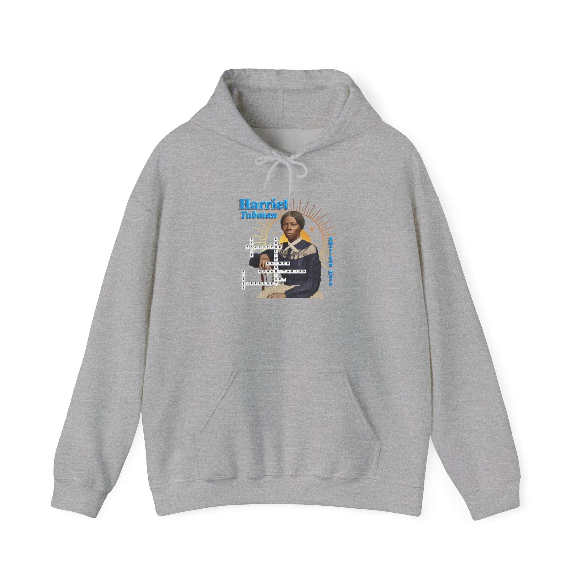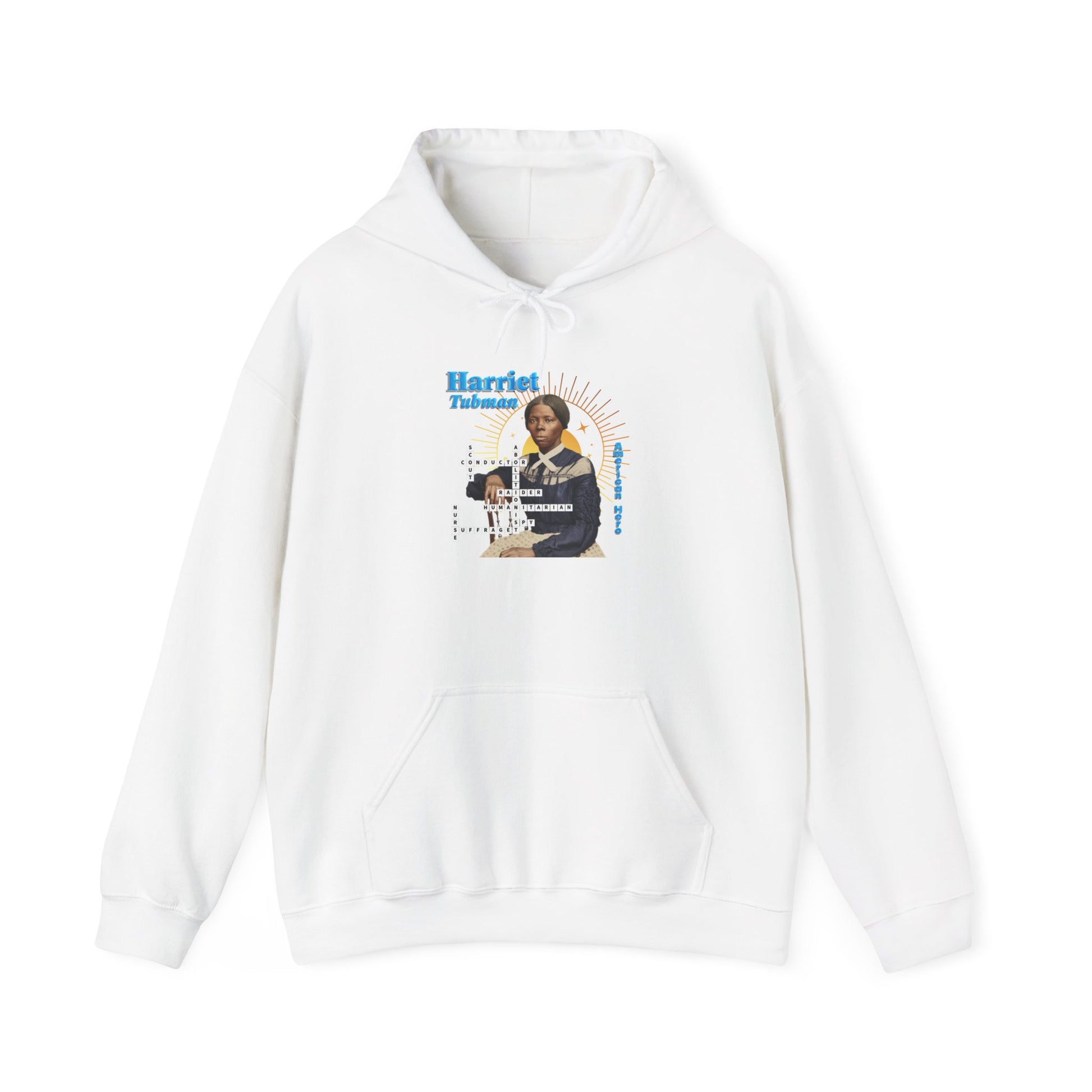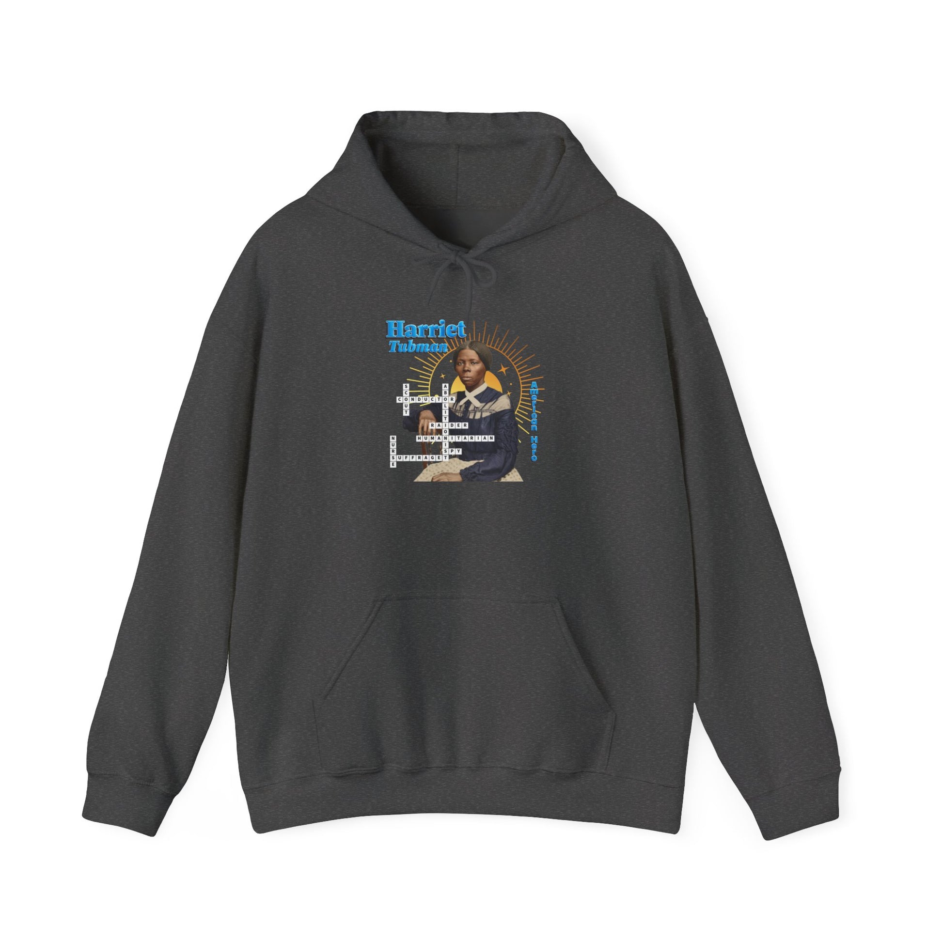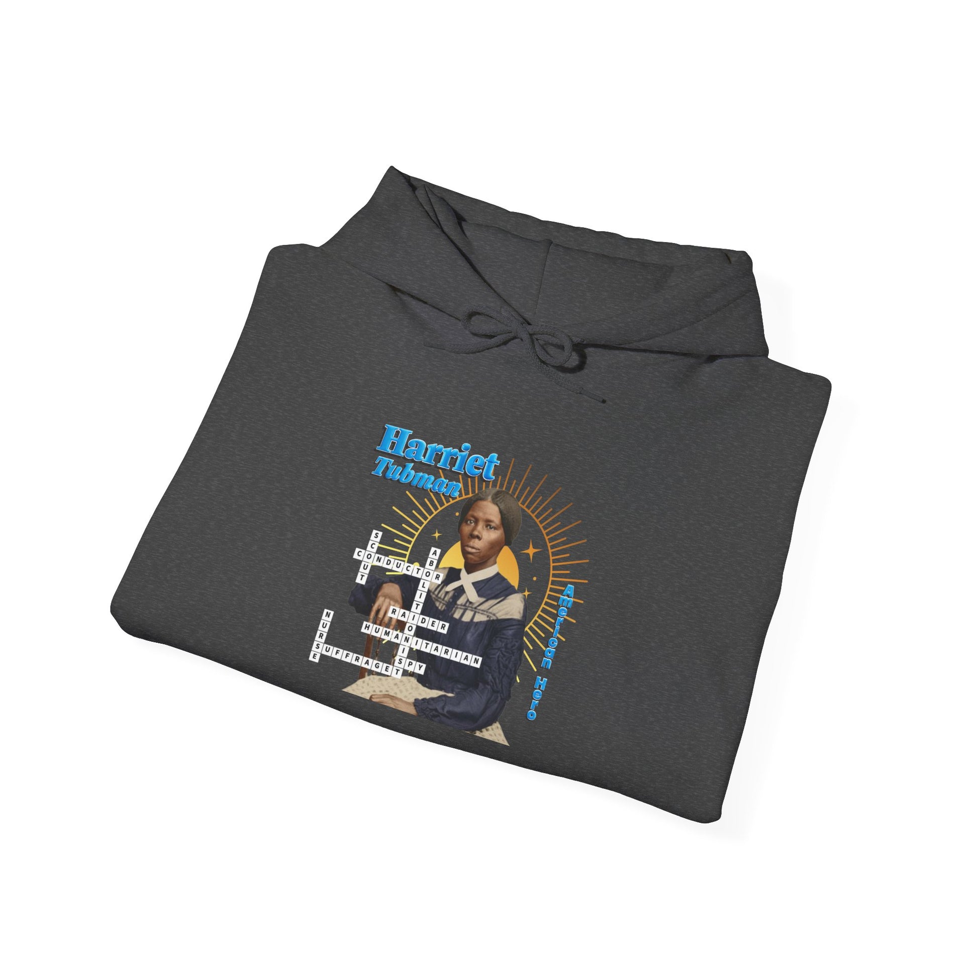 Harriet Tubman Portrait Hoodie — Inspirational Historical Figure Graphic Sweatshirt with blue text